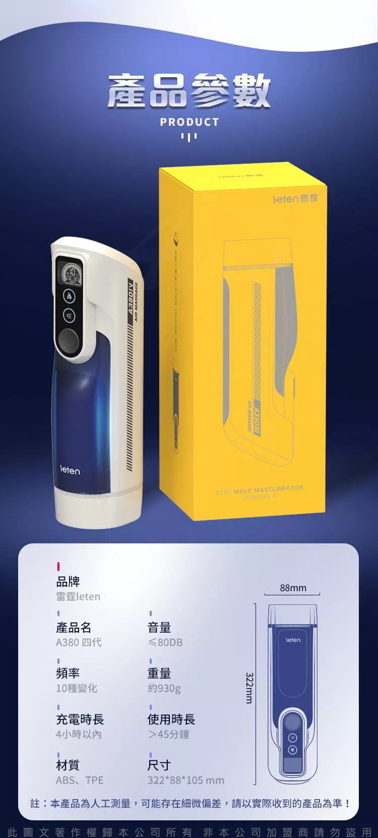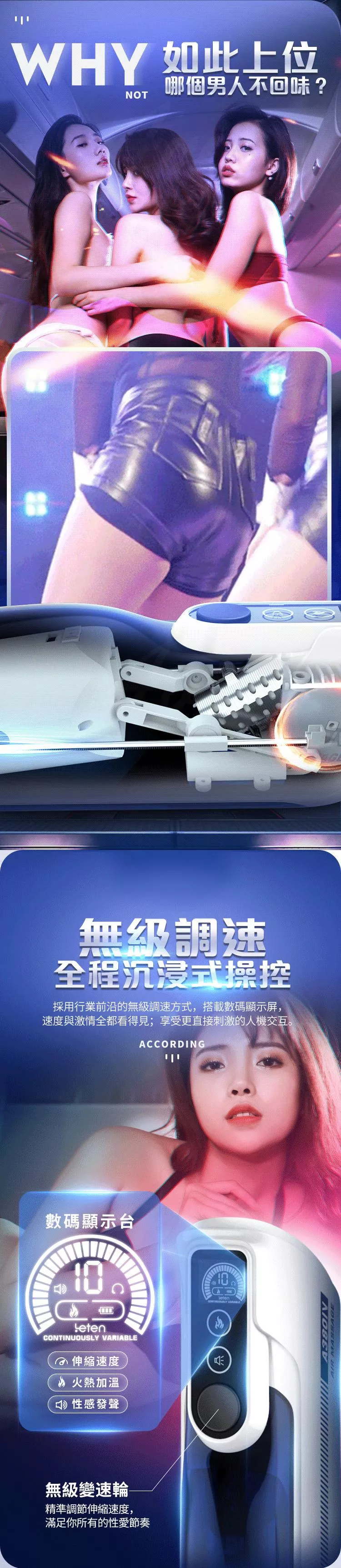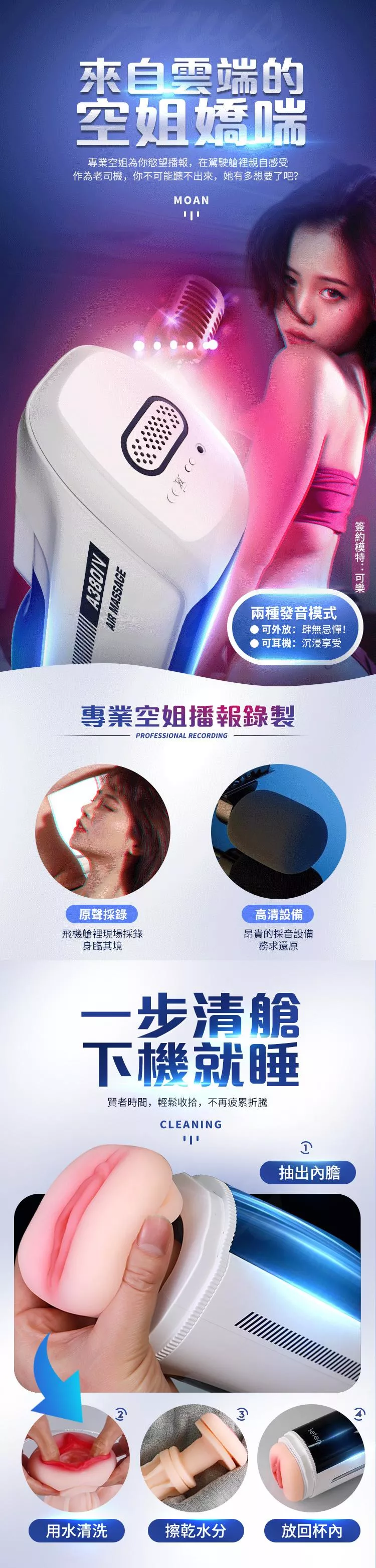 A380四代性愛頭等艙再升級全套豪華配備,一分鐘350次活塞上位,全程模擬空姐上下活塞動作,帶來非同一般的上位快感。緊嫩蜜道由上百顆蜜芽紋理組成的迷情通道緊緊吸附著您,彷彿進了極樂空間。擁有智能發聲功能,給您親臨現場的快感體驗來自雲尖上的誘惑。並且A380四代採一鍵預熱讓您全程享受被暖暖的包裹住猶如情人般真實。無級調速方式,搭載數碼顯示屏,速度與激情全都看得見;享受更直接刺激唷~