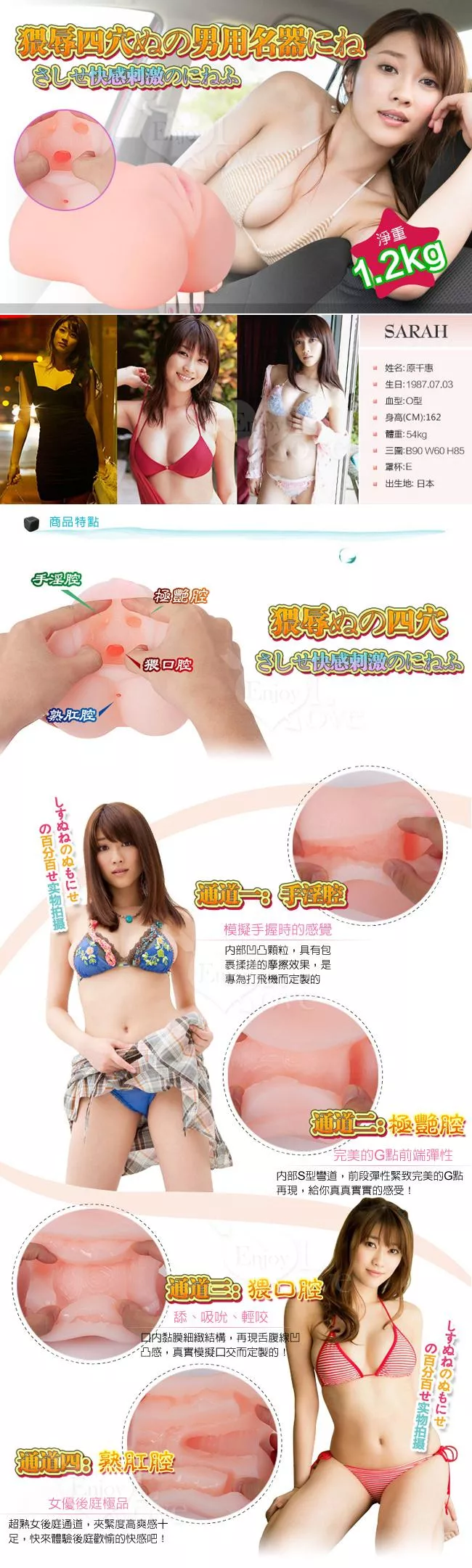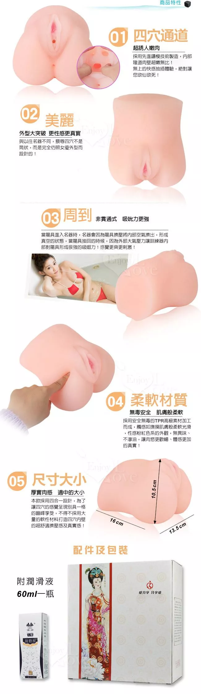 看清楚哦,這是一個名器共有4個洞,一個名器即可享受3P和後庭的樂趣。不同的感受,有處女、少女、熟女、後庭4種,每種的構造都不同,玩就玩個痛快! ! !