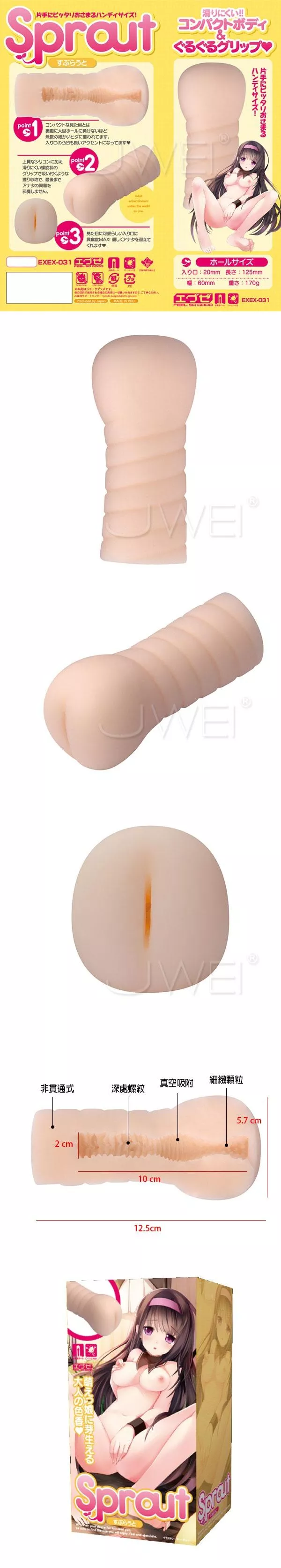 ■ 日本EXE出品,品質保證。■ 種類:非貫通■ 材質:矽膠■ 尺寸:全長12.5cm、最大直徑5.7cm■ 特色:螺紋、真空吸附、細緻顆粒構造