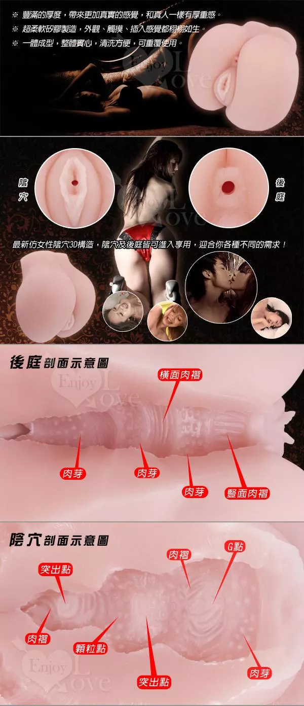 ※ 3D立體仿真人陰道及後庭構造,雙雙都將帶給您最強烈觸覺刺激。