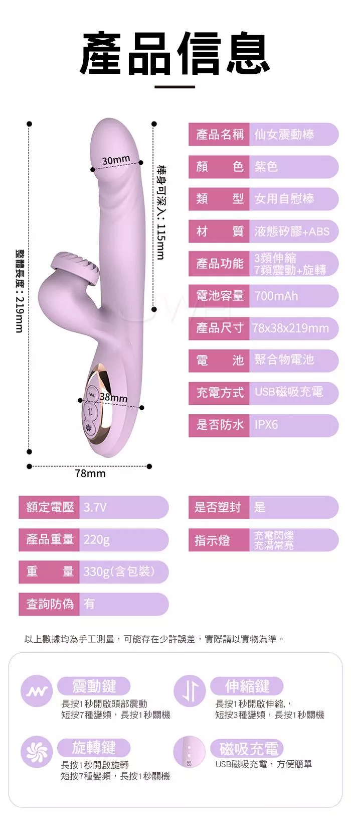 ■特色:3頻伸縮、7頻震動+7頻旋轉(可正反旋轉)、IPX6防水