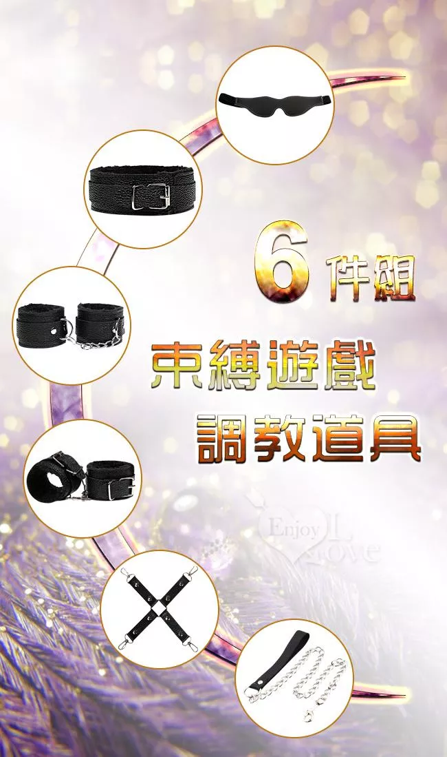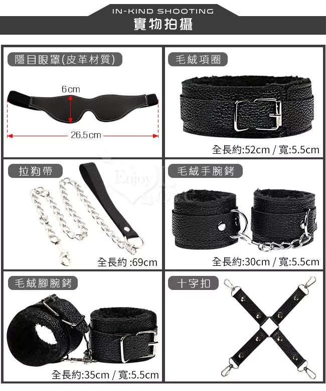 M遊戲道具6件組:1.毛絨項圈1個2.拉狗帶一條3.毛絨手腕銬一對4.毛絨腳腕銬一對5.目隱眼罩一個6.十字扣
