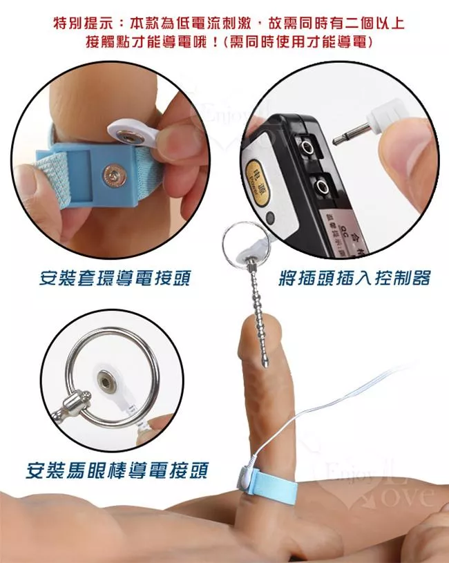 1、單獨使用一個點是沒有刺激反應,需要同時通過人體皮膚兩個接觸點以上(馬眼棒及陰莖睪丸套環)配對使用,形成一個迴路電流。