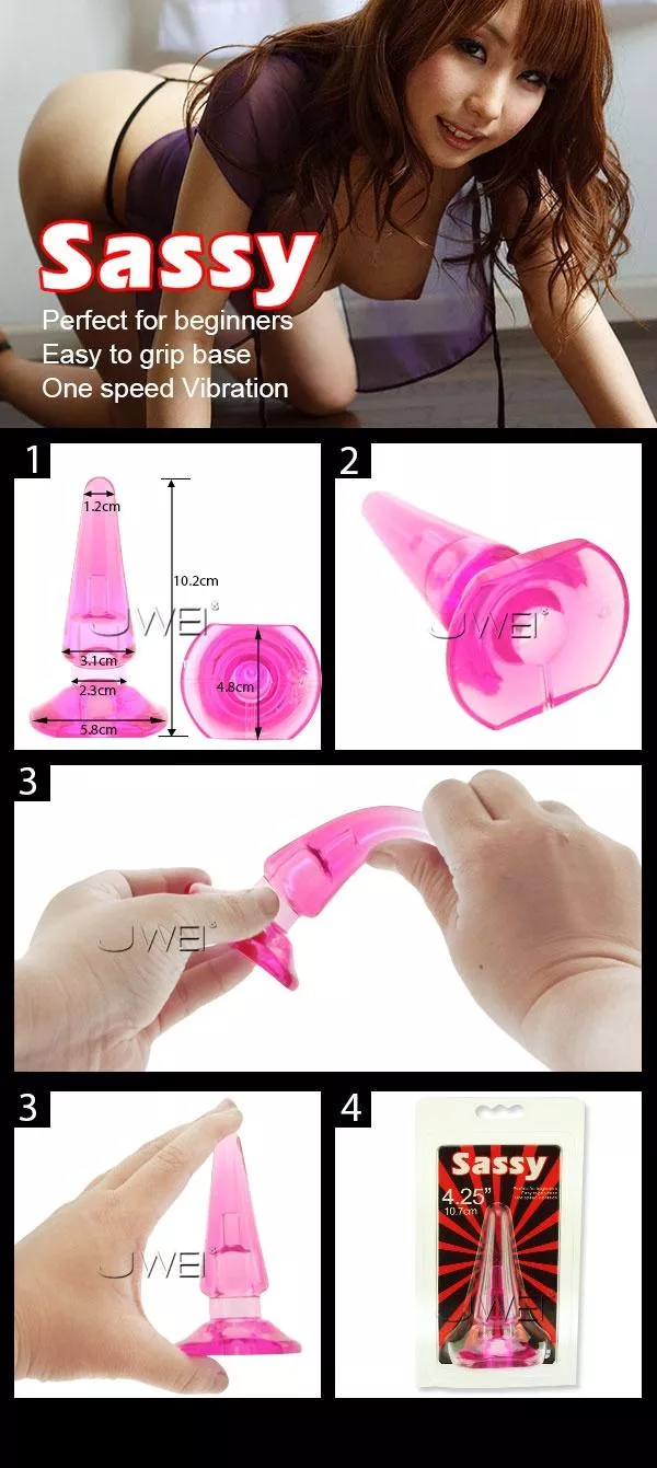 水晶透明果凍膠材質,材質軟中偏硬,錐型的設計,讓初學者也可以放心使用的尺寸,將它插入你的後庭慢慢拉動,刺激你的敏感神經,如果再配合旋轉抽動絕對讓你下體淫水如山洪一般的瀑發。底部有一孔位,可以另外購買一個掌心雷震動器然後置入這個孔內,馬上就可變身成震動型的後庭塞,讓你充分體驗不同的激震快感,配合潤滑液使用,給後庭以完全野性的衝擊,擠壓的感覺由外而內,保證讓人高潮不斷。
