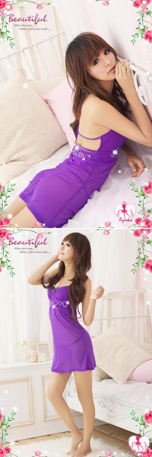 ‧超深V的低胸款型設計,加上銀鑽串珠的點綴,更是輕鬆的帶出妳那優雅大方的好氣質喔~‧本款特別採用輕薄綿密的頂級薄紗材質,柔軟舒適、透氣性佳!‧簡單營造出輕盈卻又充滿神秘的感受,讓妳若隱若現的身體曲線,激發出他如火般的慾望,夜夜彼此享受浪漫高潮吧! 內容物:一組二件包含睡襯衣、丁字褲。尺寸:FREE SIZE衣長:約66公分 ( 不含肩帶 )適穿胸圍:32 ~ 36吋適穿腰圍:22 ~ 28吋材質:100%POLYESTER特色:肩帶採繞頸綁帶式設計,胸後有鬆緊帶。