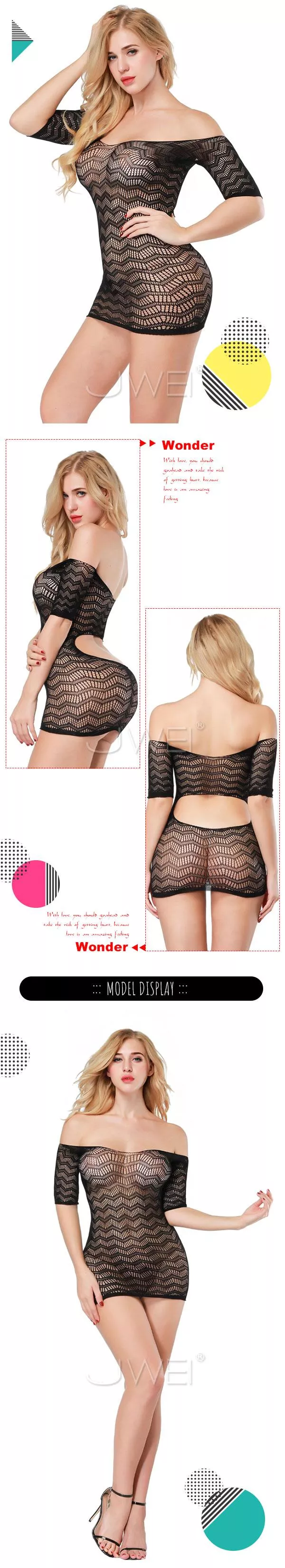 露肩網狀幾何蕾絲透視,給人一種成熟愛慾,
