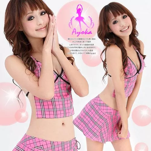 ◆商品內容:一組三件包含繞頸式比基尼上衣(肩帶可調整)、丁字褲、短裙。
